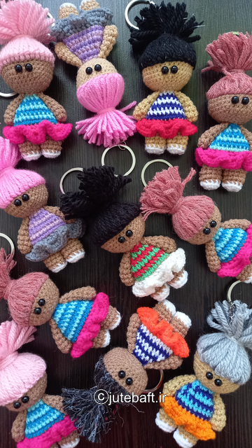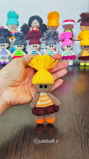 عروسک جاکلیدی دستساز ژتهبافت، با طراحی اختصاصی و بافت دقیق، انتخابی مناسب برای جاکلیدی، آویز کیف و کوله، آویز تخت کودک، آویز فلش و یا حتی آویز آینهی ماشین هستند.