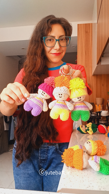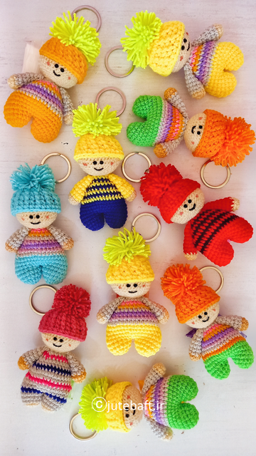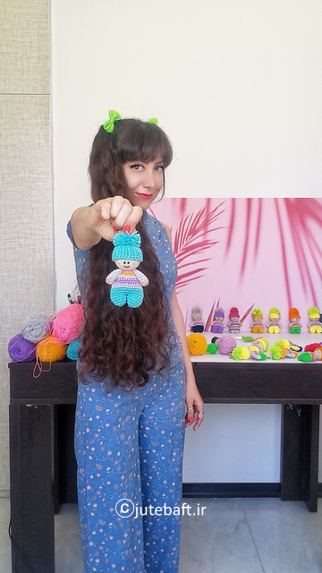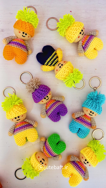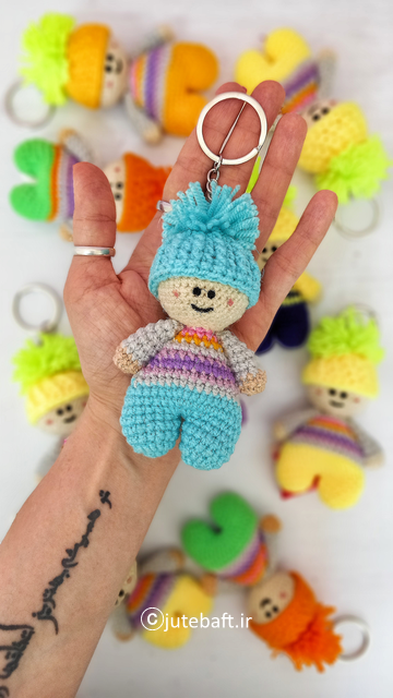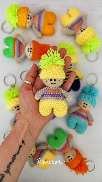 عروسک جاکلیدی دستساز ژتهبافت، با طراحی اختصاصی و بافت دقیق، انتخابی مناسب برای جاکلیدی، آویز کیف و کوله، آویز تخت کودک، آویز فلش و یا حتی آویز آینهی ماشین هستند.