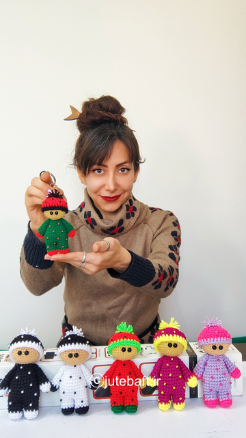عروسک جاکلیدی دستساز ژتهبافت، با طراحی اختصاصی و بافت دقیق، انتخابی مناسب برای جاکلیدی، آویز کیف و کوله، آویز تخت کودک، آویز فلش و یا حتی آویز آینهی ماشین هستند.