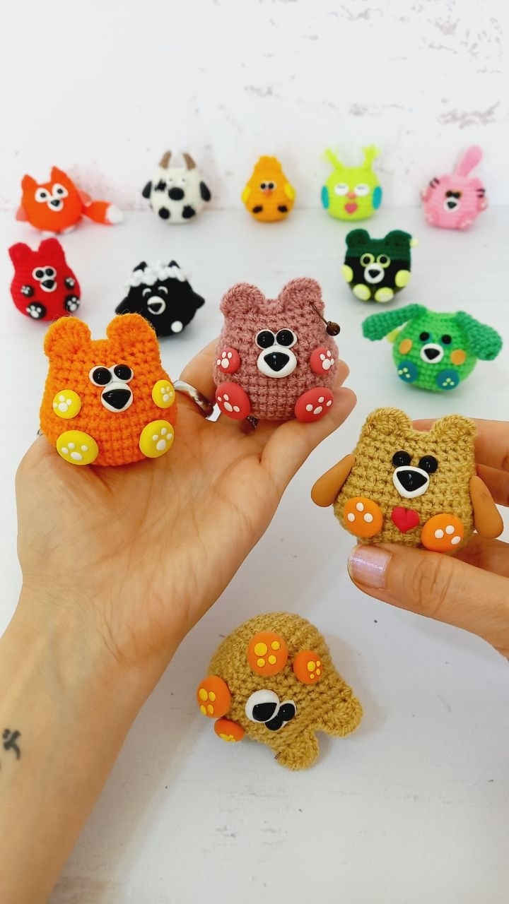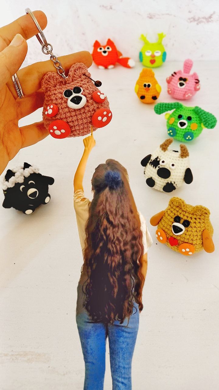 این عروسکها چندمنظوره طراحی شدهاند و ویژگی خاص شون اینه که عروسک بافته شده 6 کاربرد همزمان داره؛ جاکلیدی، آویز کیف و کوله، آویز تخت نوزاد، آویز فلش، آویز آینه خودرو یا مگنت یخچالی و چون دست مشتری بازه که اونجوری که میخواد ازش استفاده کن، بازار یابی و فروش عروسک ها، بسیار ساده تر میشود.